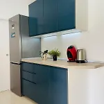 - ❓Is there a kitchen available at the apartment for guest use?Yes, the apartment is furnished with a fully-fitted kitchen and offers a microwave, an electric kettle, and a refrigerator as well.